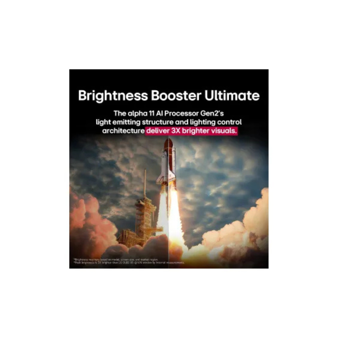 At the core of this TV lies LG’s most powerful α11 AI Processor 4K Gen2, engineered to deliver exceptional image processing and intelligent upscaling. It analyzes and enhances every frame using deep-learning algorithms, bringing out lifelike textures, perfect contrast, and stunning depth. Whether you’re streaming a blockbuster, gaming in 4K, or watching sports, the α11 chip ensures crystal-clear clarity, accurate color reproduction, and ultra-smooth motion.