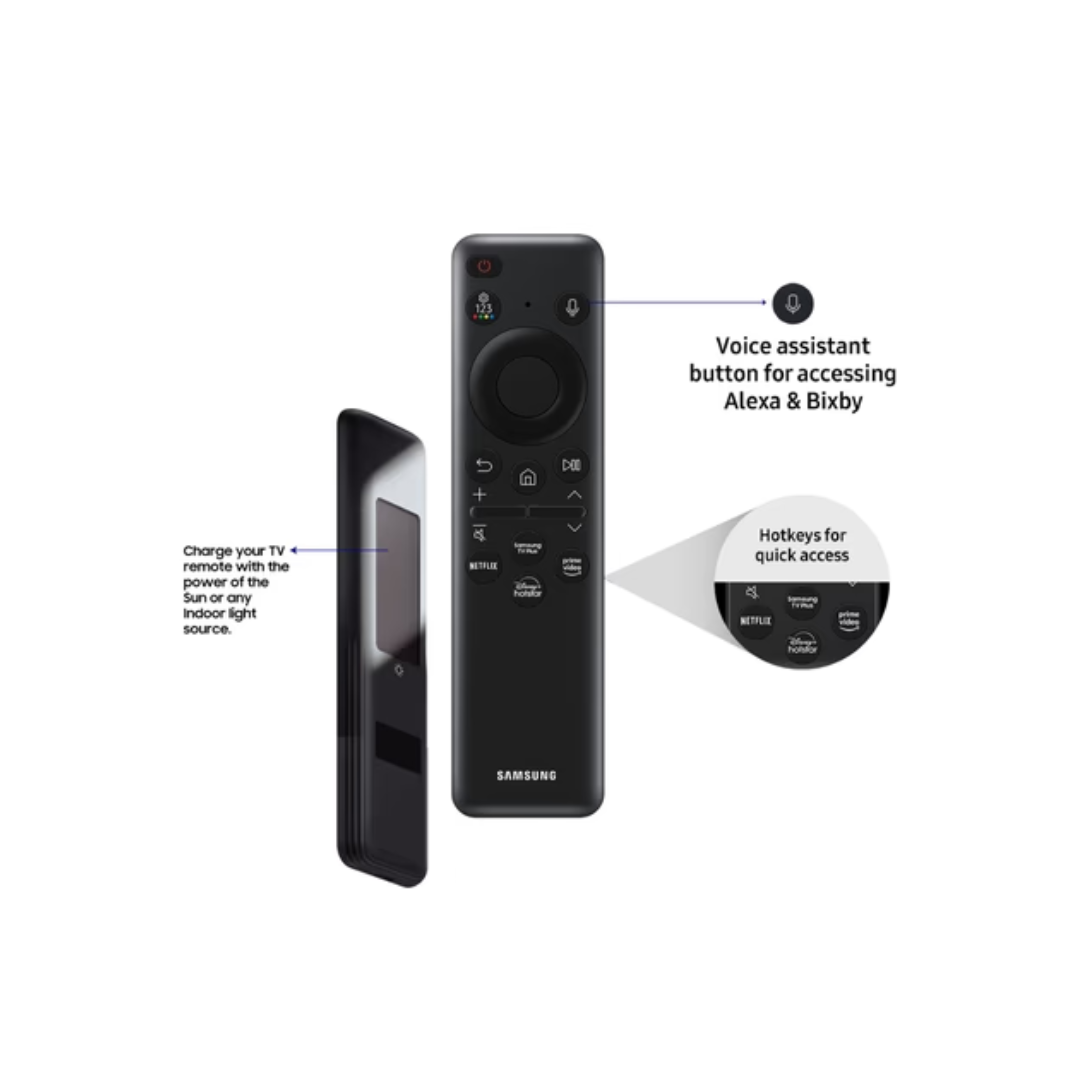 As a Smart TV, it runs on Samsung’s intuitive Tizen OS, providing seamless access to popular streaming platforms, apps, and live TV. With built-in voice assistants such as Bixby and Alexa, you can control your entertainment hands-free. Smart connectivity features like screen mirroring, Multi View, and SmartThings integration make it easy to connect and control all your compatible devices effortlessly.